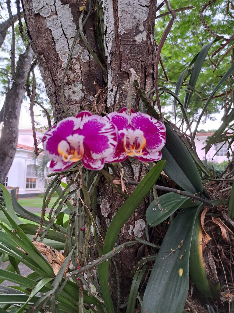 Das köstliche Abendessen und Frühstück haben wir im Park des Hotels genossen, in dem herrliche Orchideen wachsen.