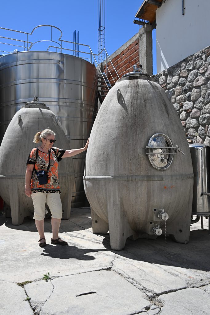 Hemos visitado tres bodegas, todas jóvenes y con producciones pequeñas (las bodegas en Argentina suelen ser jóvenes y no muy grandes, ya que la producción de vino de calidad se comenzó mucho más tarde que en Europa): San Pedro de Yacochuya, Domingo Molina y Piatelli, todas juntitas y cerca de Cafayate. Las catas que hemos realizado eran 6 vinos en cada bodega, a 75 cl. por copa que compartíamos Marita y yo, con lo que salíamos a 210 cl. de vino por cabeza y bodega. Unas cantidades aceptables.