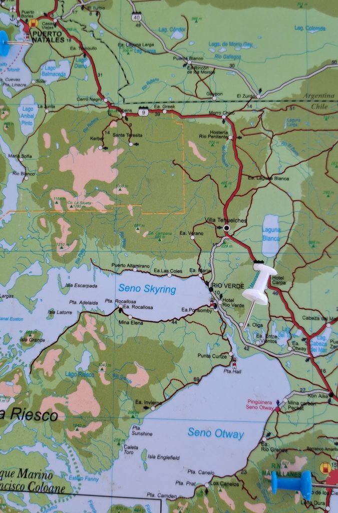 Am 2.2. brechen wir Richtung Punta Arenas auf. Der Ort liegt etwa 240 km südlich an der Magellanstrasse (warum heißt eine Meerenge auf deutsch eigentlich Straße?).