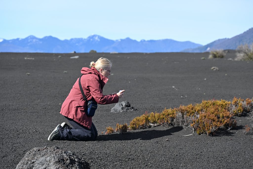 La subida por las zonas empinadas con hielo-nieve eran complicadillas, pero lo peor fue la bajada. Marita resbaló de culo incontables veces, pero valió la pena. El estacionamiento para acceder a este sendero estaba lleno de minibuses. Según nos explicó José, empleado de las cabañas y experto fotógrafo de fauna local, hay empresas que llevan a turistas desde Santiago hasta el Parque Nacional durante la noche, se hacen el sendero durante el día y vuelven a Santiago por la noche. Es un turismo malo para la zona, La Araucanía, una de las más pobres de Chile. El domingo notamos menos gente en el Parque. Hacemos varias excursiones por las coladas de lava que dejó la última erupción del volcán Llaima y por el bosque de araucarias.