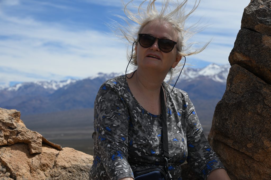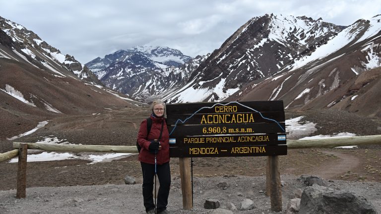 El guardaparques de la entrada (Sergio o “Pelado”) nos recomendó tres visitas más por la 52, la Cruz del Paramillos (a 3000 de altura), el Monolito de Darwin (estuvo aquí) donde encontró árboles petrificados y un precipicio de unos 200 metros de caída cortada a pico. Pues no llegamos. Uspallata está a 2000 metros de altura, así que teníamos que subir 1000 metros para llegar al primer hito y unos 500 más para llegar a los otros, por carretera de grava en estado regular. Con fuerte viento de cola, casi no entraba aire en el motor y a los pocos kilómetros le cogió un calentón y tuvimos que dar media vuelta. Lástima, lástima.