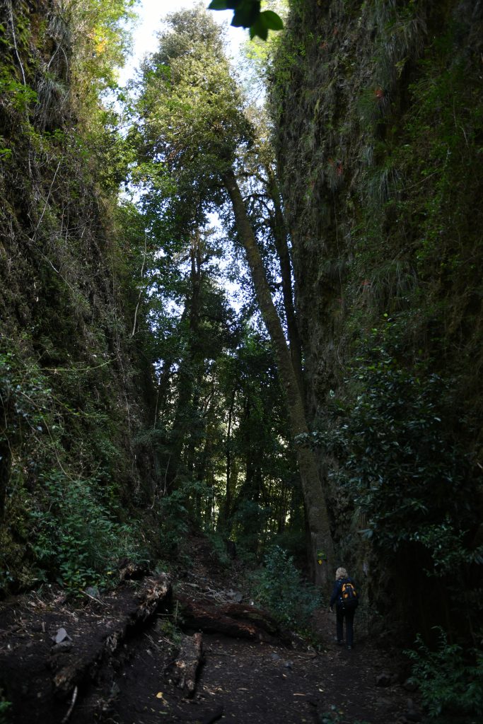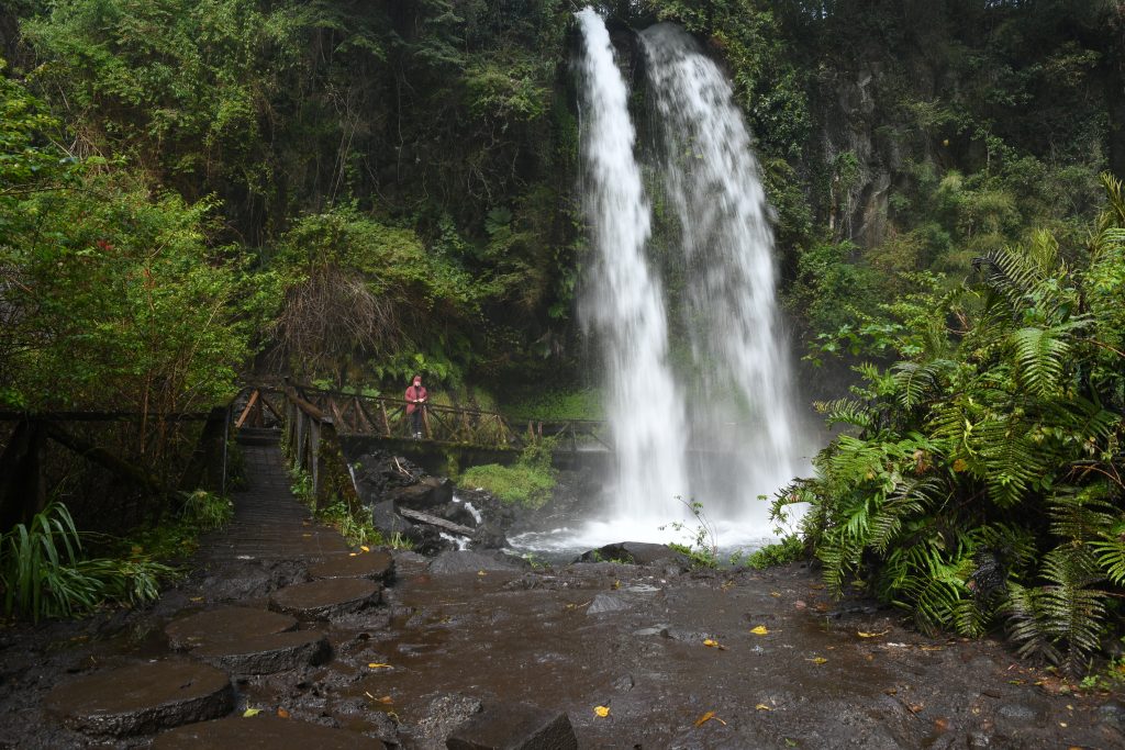 Nosotros, que no somos muy partidarios de este tipo de acciones, conseguimos saltarnos el bloqueo, a las dos horas, gracias a las gestiones de Marita con algunos de los responsables del bloqueo y a la ayuda de la policía. A la mañana siguiente queríamos visitar dos lugares del PN Huilo-Huilo. Para ello teníamos que cruzar de nuevo el bloqueo, con el riesgo de no poder pasar a la vuelta y perder el ferry de conexión hacia Argentina. Así que decidimos ir a pie hasta el primer lugar, a unos tres kilómetros de distancia.