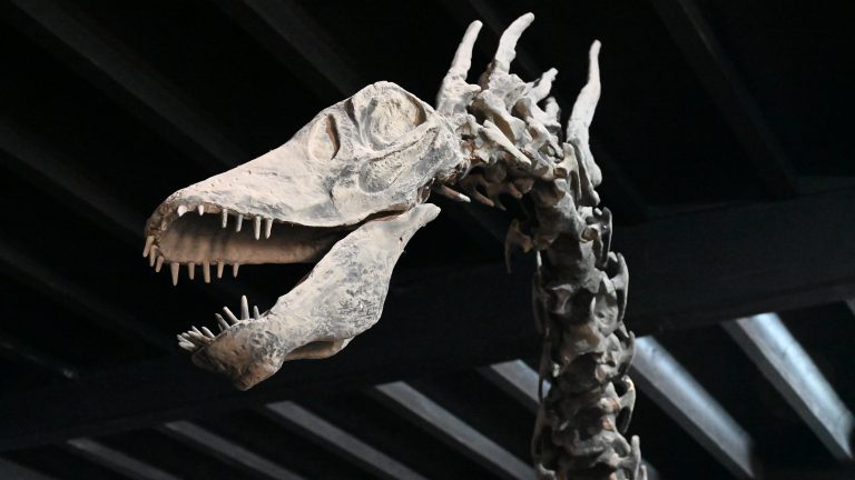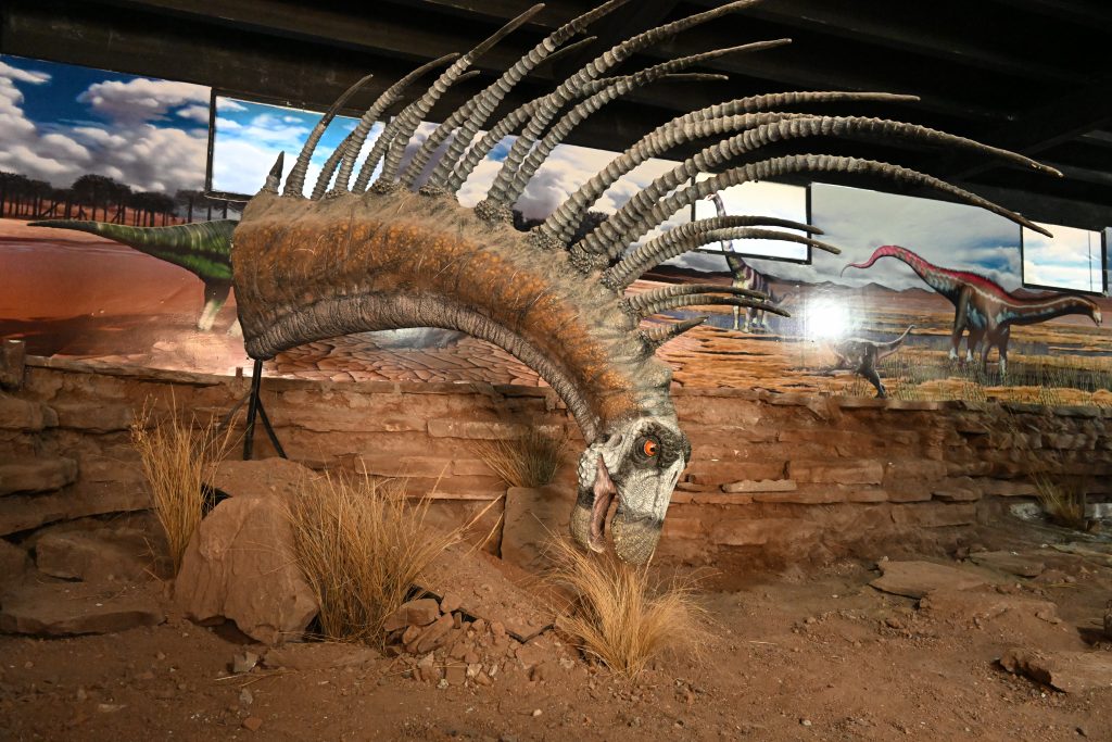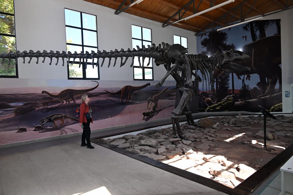 El primero presenta una reproducción del Giganotosaurus carolinii, un gigante carnívoro de unos 13 metros de largo, 4,6 de alto y unas 8 toneladas de peso, mayor que el Tiranosaurus Rex.