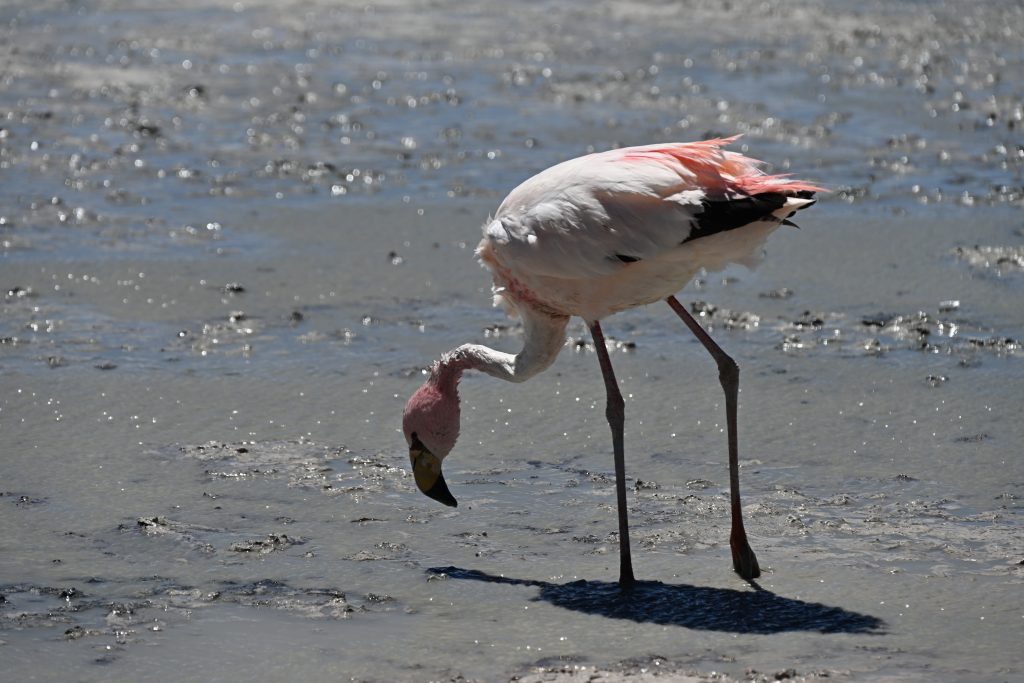 Pero a los flamencos les encantan estas lagunas. Estos se alimentan de bacterias que filtran con sus picos.