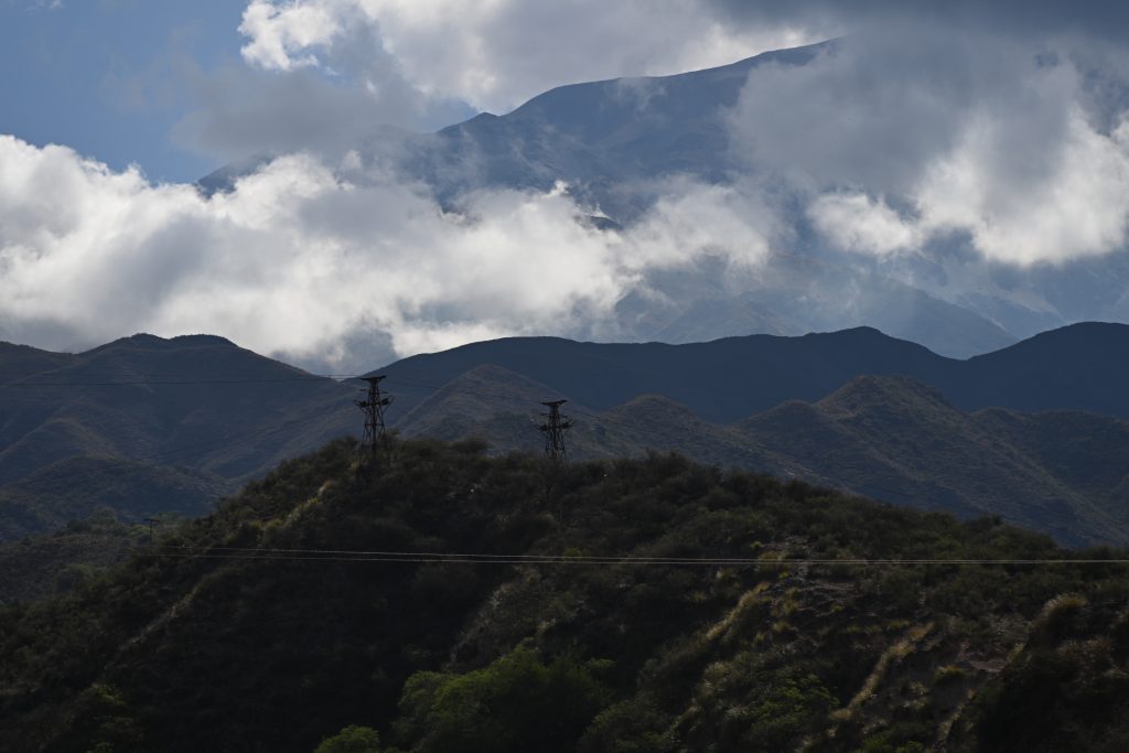 Torres del funicular en su camino casi recto hacia los 4500 m.