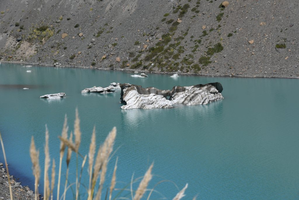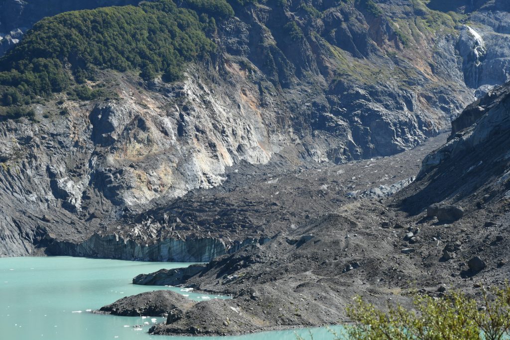 El miércoles 22 salimos hacia Bariloche, desviándonos primero por la RP 82 hacia la base del Cerro Tronador, en el PN Nahuel Huapi (Tronador, nombre que proviene del ruido producido por las avalanchas de hielo y nieve). 46 km de ripio, la carretera es unidireccional en varios tramos. Para volver tuvimos que esperar media hora a que abrieran la barrera. Pero el paisaje es precioso, aunque se nota que estamos cerca de la meca del turismo argentino por el número de visitantes. El Tronador es un volcán extinto, de 3491 metros de altitud, que conserva gran parte de su gigantesco cráter. Se han contado hasta ocho glaciares en el Tronador. Nosotros sólo visitamos el Ventisquero Negro, que es bastante curioso porque no se ve el hielo blanco, sino una capa grisácea oscura debido a los sedimentos que arrastra el glaciar. Los bloques de hielo que se desprenden son muy bonitos.