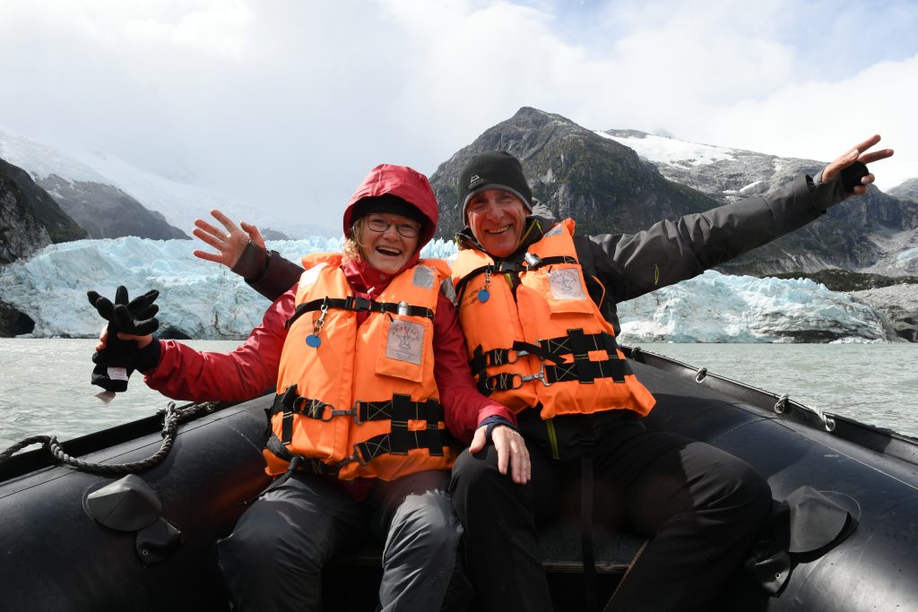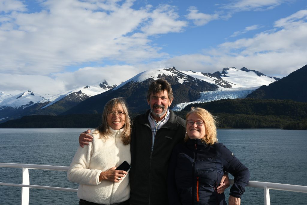 En la tarde del cuarto día, cuando ya abandonábamos el fiordo Agostini, las cumbres de las montañas se despejaron de nubes y el sol iluminó el fiordo. En ese momento, el capitán ordenó dar media vuelta y el barco se dirigió de nuevo hacia el fondo del fiordo para que os pasajeros pudiéramos apreciarlo en toda su belleza. ¡Qué espectáculo! Que se vea toda la cadena montañosa a la vez y al mismo tiempo iluminada por el sol es un evento tan raro, que hasta parte de la tripulación subió a cubierta para tomar fotos. Gracias Capitán.